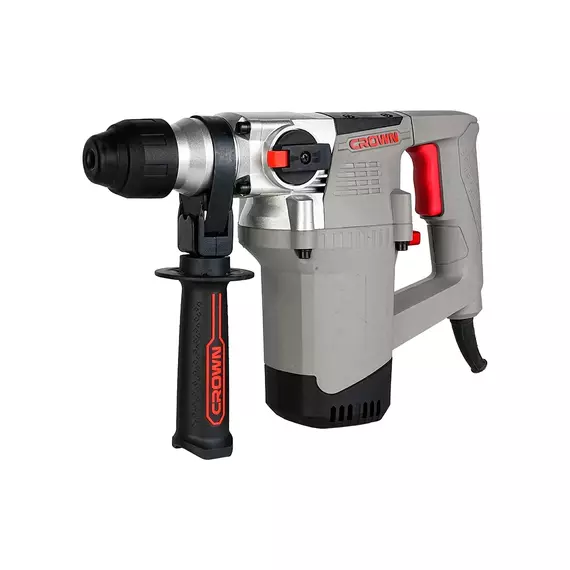 Перфоратор CROWN CT18187 BMC оснащён тремя режимами работы: бурение, сверление и выполнение отбойных работ, что обеспечивает универсальность использования. Устройство имеет классический двойной переключатель для удобного выбора режима.