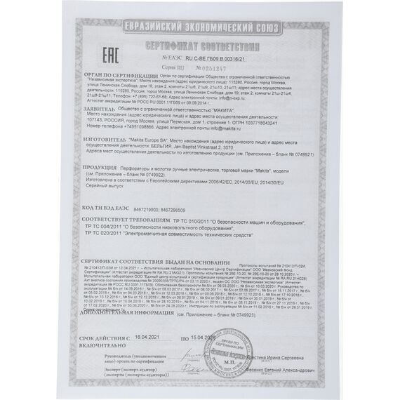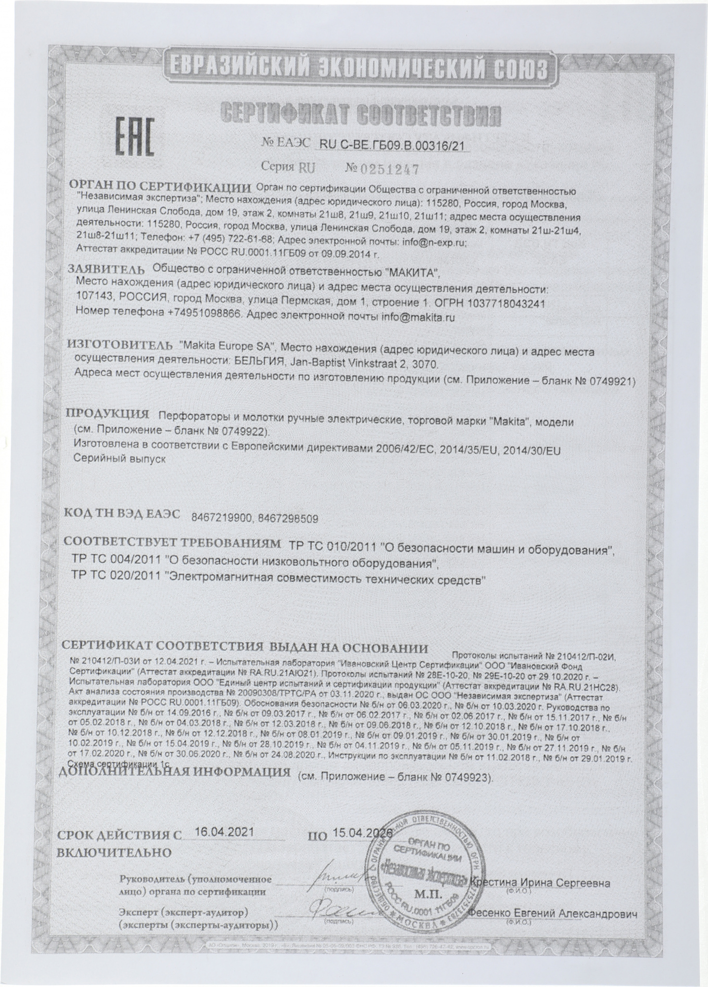 | Комплект поставки | Перфоратор, боковая рукоятка, ограничитель глубины, кейс. |