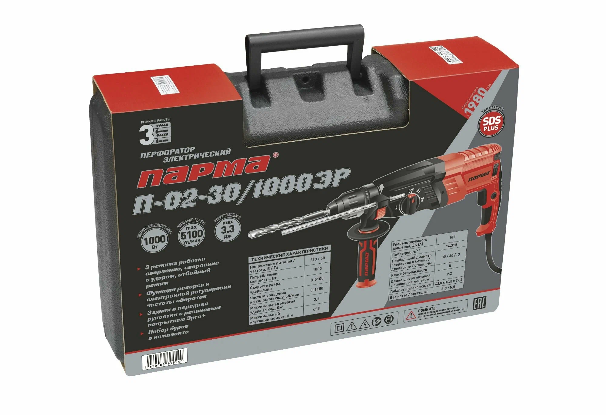 Перфоратор Парма П-02-30/1000ЭР SDS-plus 3.3Дж 1000Вт кейс [02.027.00009]