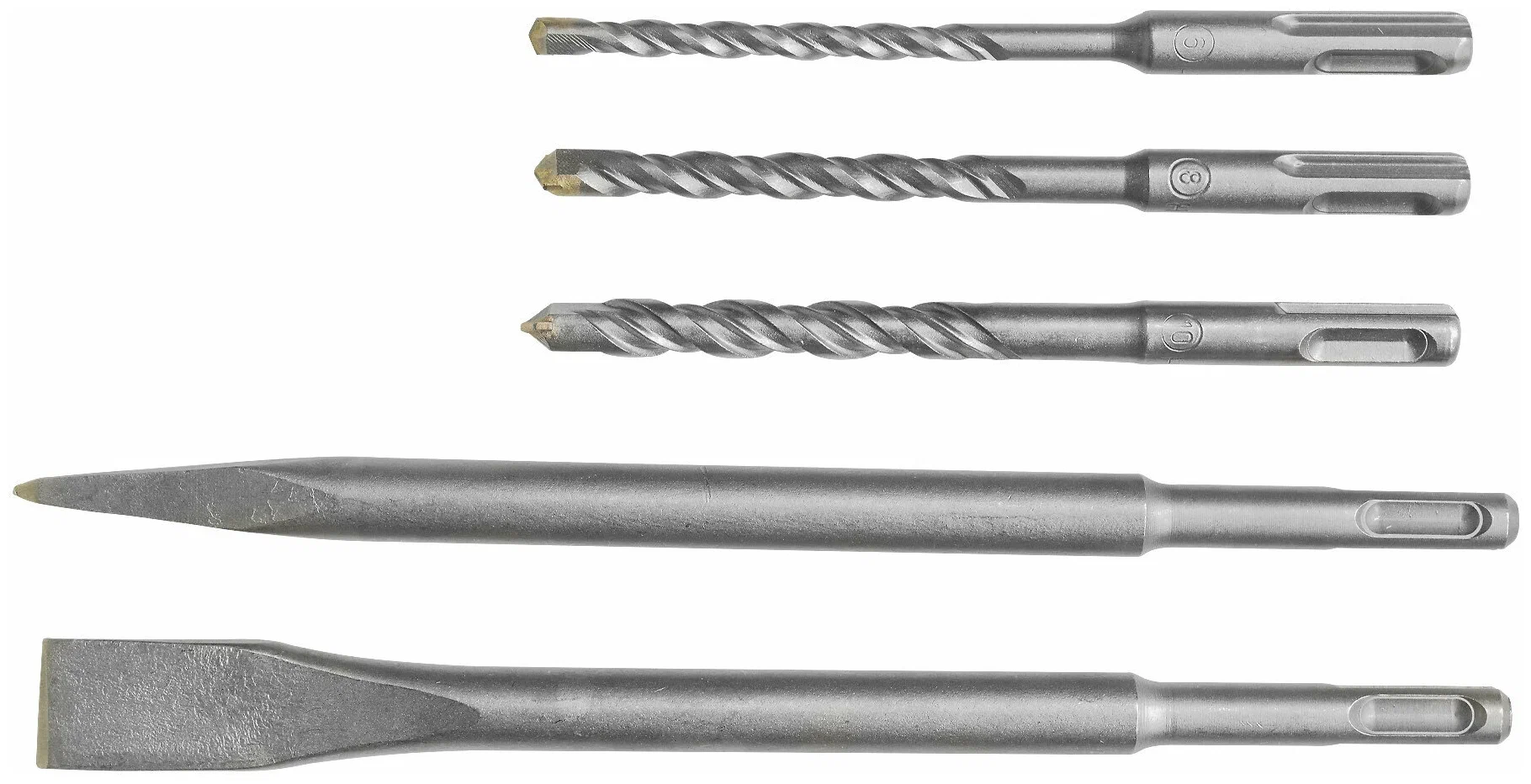| Комплект поставки | Перфоратор, ограничитель глубины сверления, плоское долото, пика-долото, набор буров, руководство по эксплуатации, гарантийный талон, кейс. |