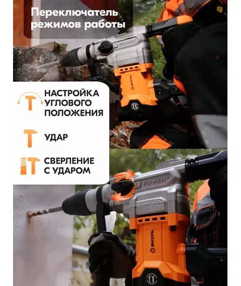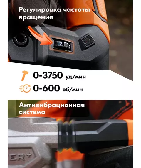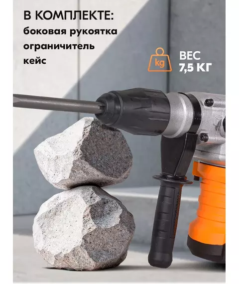 | Комплект поставки | Перфоратор, ограничитель глубины сверления, боковая рукоятка, кейс пластмассовый, руководство по эксплуатации; упаковка. |