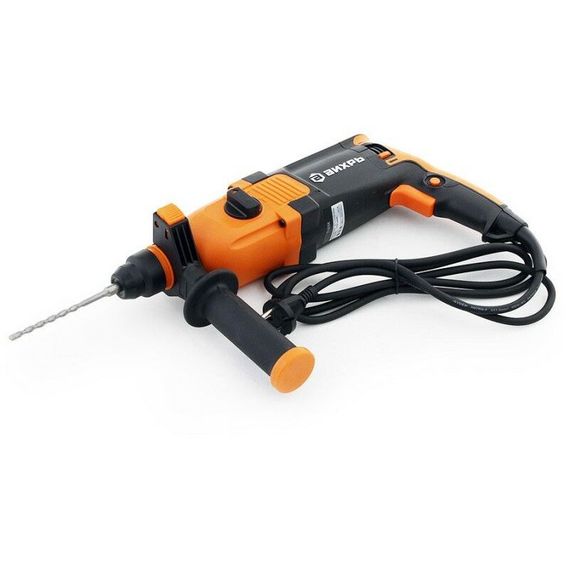 - Перфоратор ВИХРЬ – электроинструмент, аналогичный дрели, но с наличием не механического, а пневматического ударного механизма. Именно поэтому перфоратор используют для сложных работ по твёрдым материалам - бетону, кирпичу, металлам. Агрегат используется для сверления и пробивания отверстий в прочных материалах без приложения особых физических усилий со стороны оператора. Принцип работы перфоратора – это разрушение обрабатываемого материала с помощью поступательных и вращательных действий рабочего элемента. Состоит перфоратор из электрического двигателя, редуктора, ударного механизма и патрона для крепления рабочих инструментов (буры, коронки, зубила и т.д.)