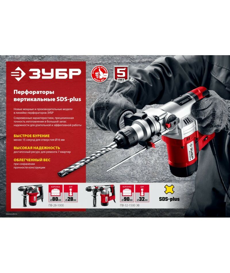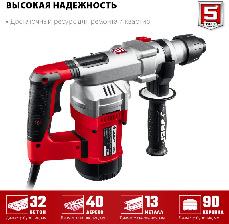 Перфоратор Зубр ПВ-32-1500 ЭВ 1500 Вт, 32 мм, SDS Plus