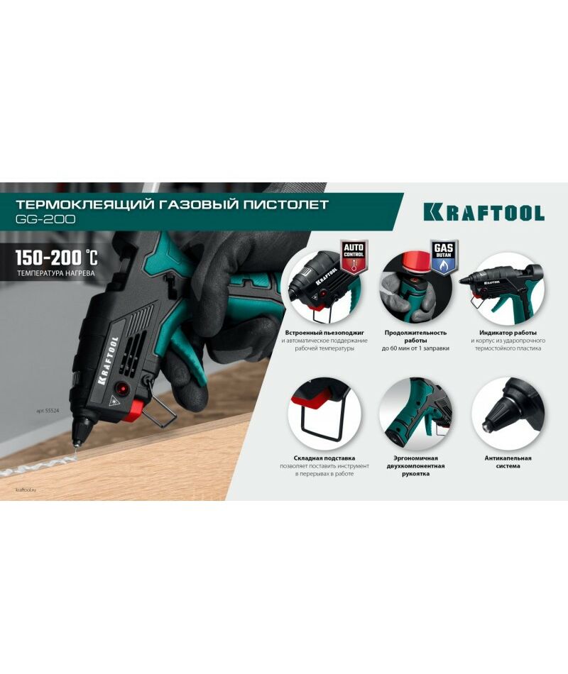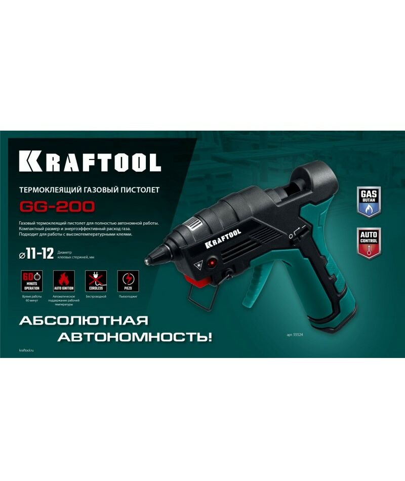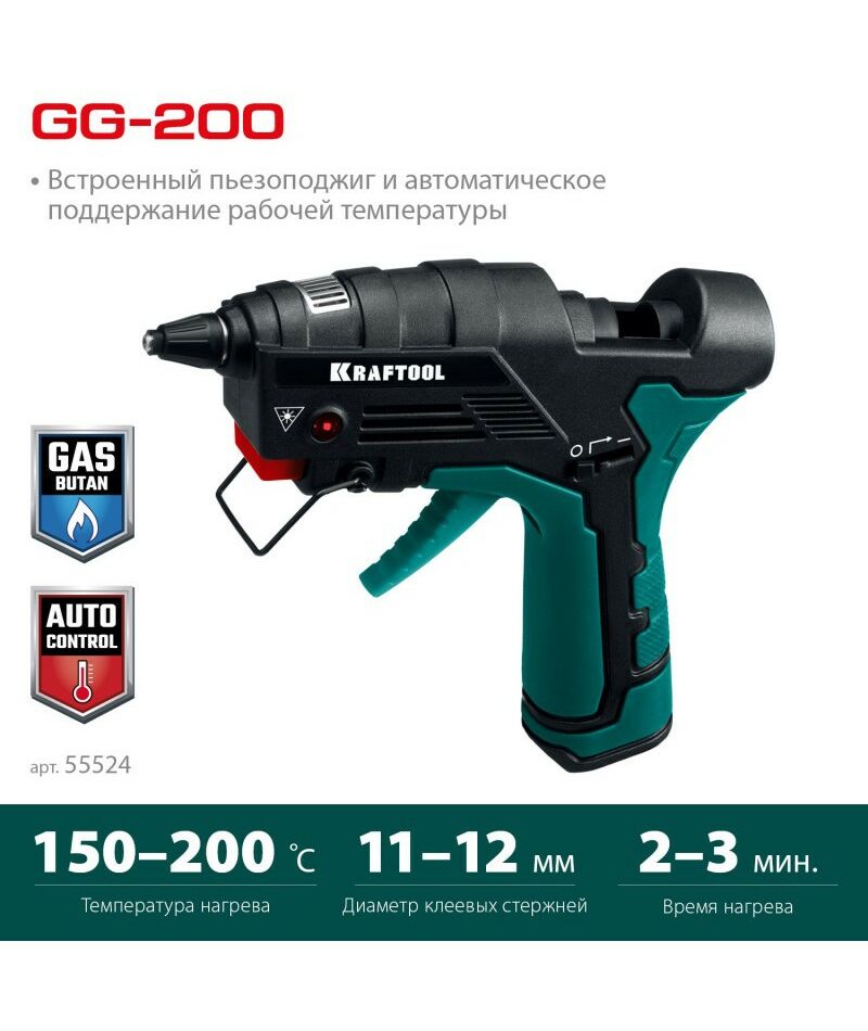 Термоклеящий газовый пистолет KRAFTOOL GG-200 11 мм 200°C [55524]