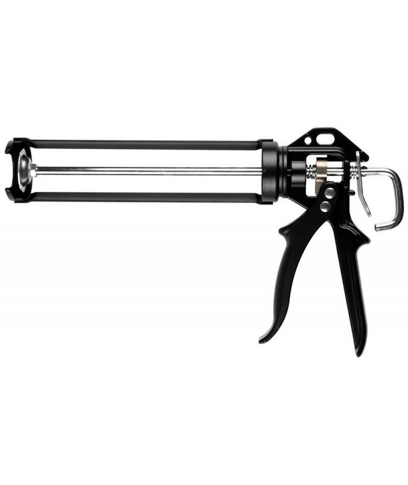 Пистолет для герметиков подходит для работы с картриджами объемом 310 мл, имеет усиленную скелетную конструкцию из стали, ручку из алюминиевого сплава, которые способствуют равномерной подачи клея либо герметика. Данная спецификация обеспечивает прочность и надежность конструкции пистолета при использовании.