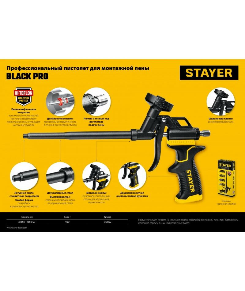 Тефлоновый пистолет для монтажной пены STAYER Black PRO Professional [06862]