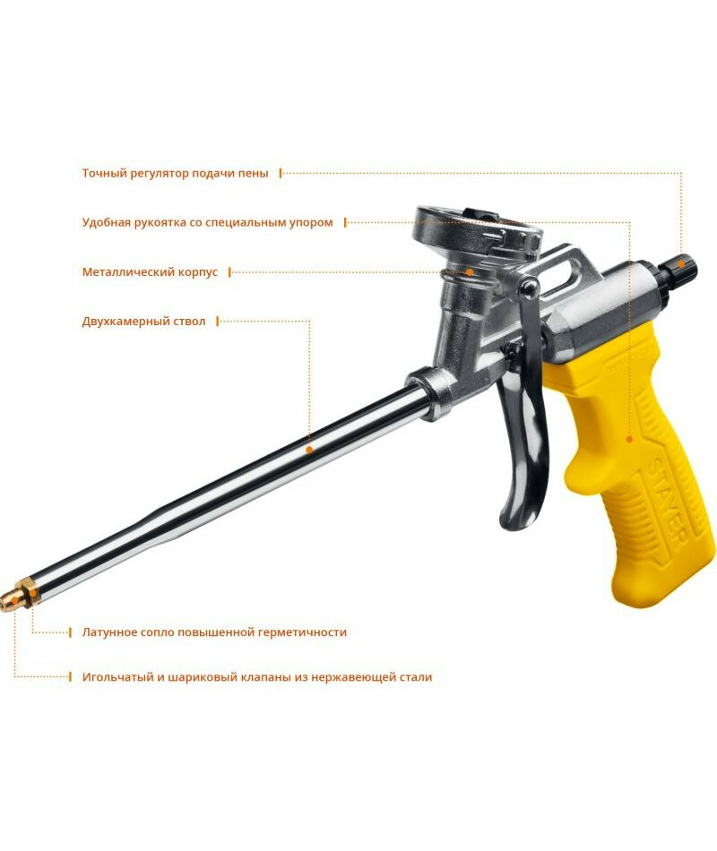 Металлический пистолет для монтажной пены STAYER Master [06863]
