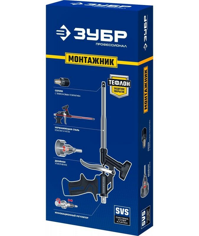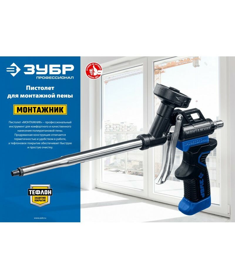 Тефлоновый пистолет для монтажной пены Зубр Монтажник [4-06875]