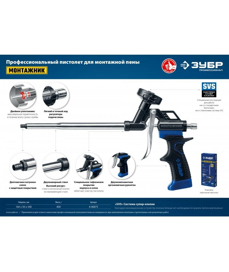 Пистолет для монтажной пены МОНТАЖНИК это инновационный инструмент, предназначенный для профессионального применения, отличающийся герметичностью, высокой надёжностью и удобством в работе. Инструмент имеет тефлоновое покрытие корпуса и сопла , что обеспечивает быструю и простую очистку.