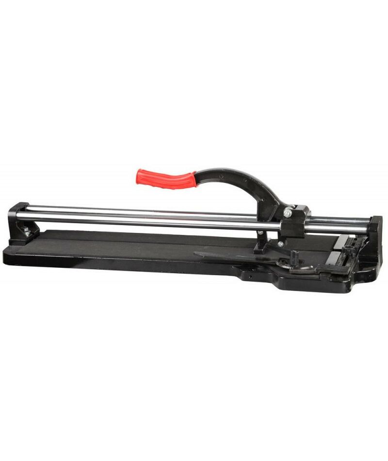 - Для работы с керамогранитом и керамической плиткой повышенной толщины плиткорез оснащен ручкой, направляющими и литой платформой.