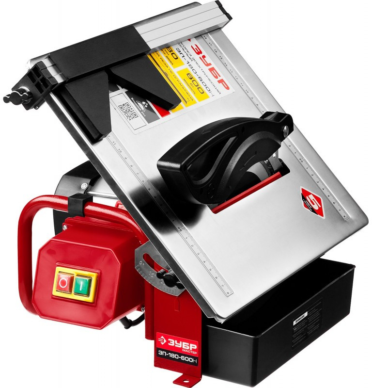 Электроплиткорез Зубр Мастер ЭП-180-600Н диск 180 мм, глубина реза 90°-34мм/45°-17мм, стол 330х360мм, 2950об/мин, 600Вт