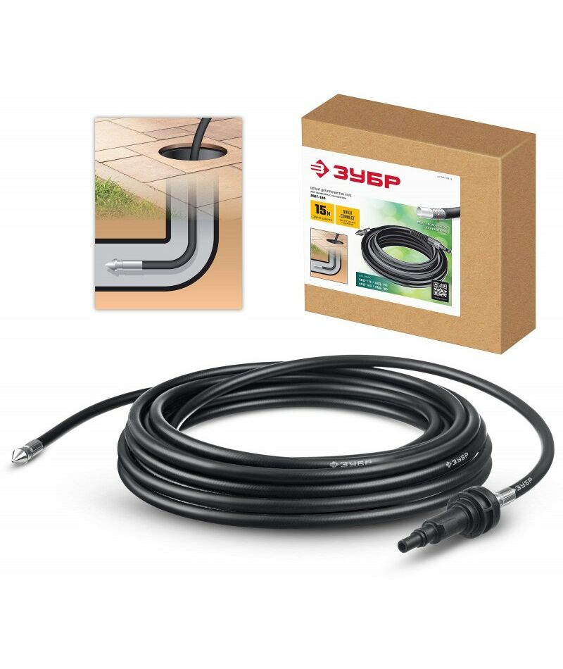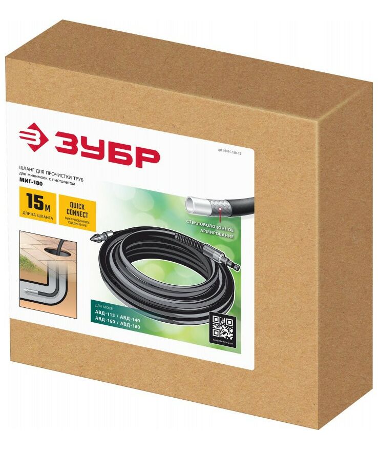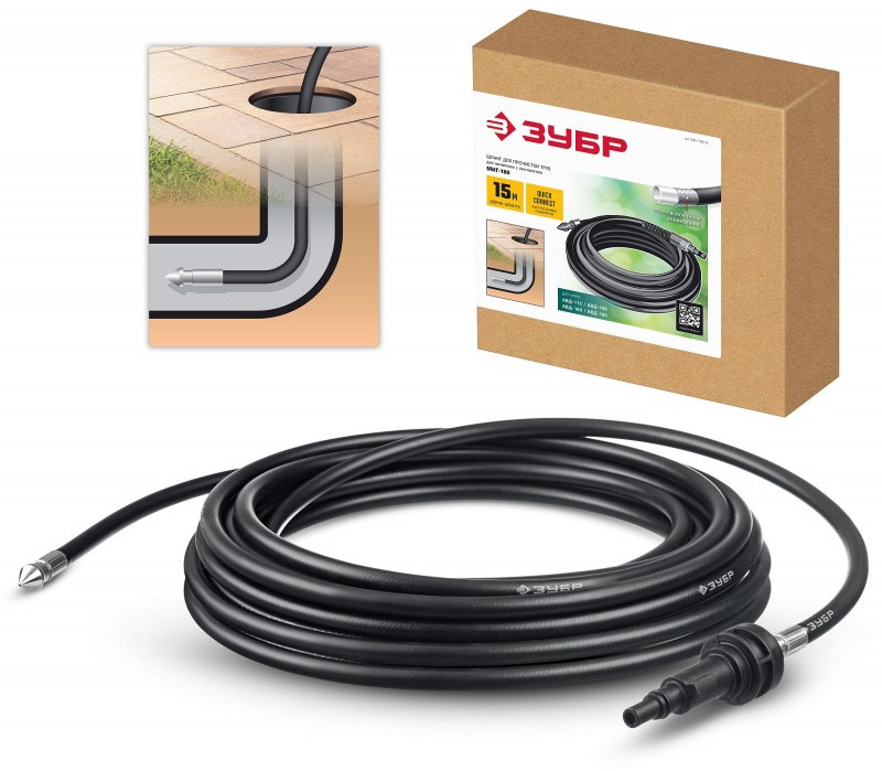 Шланг для прочистки труб Зубр 70414-180-15 для пистолета МИГ-180, 15 м