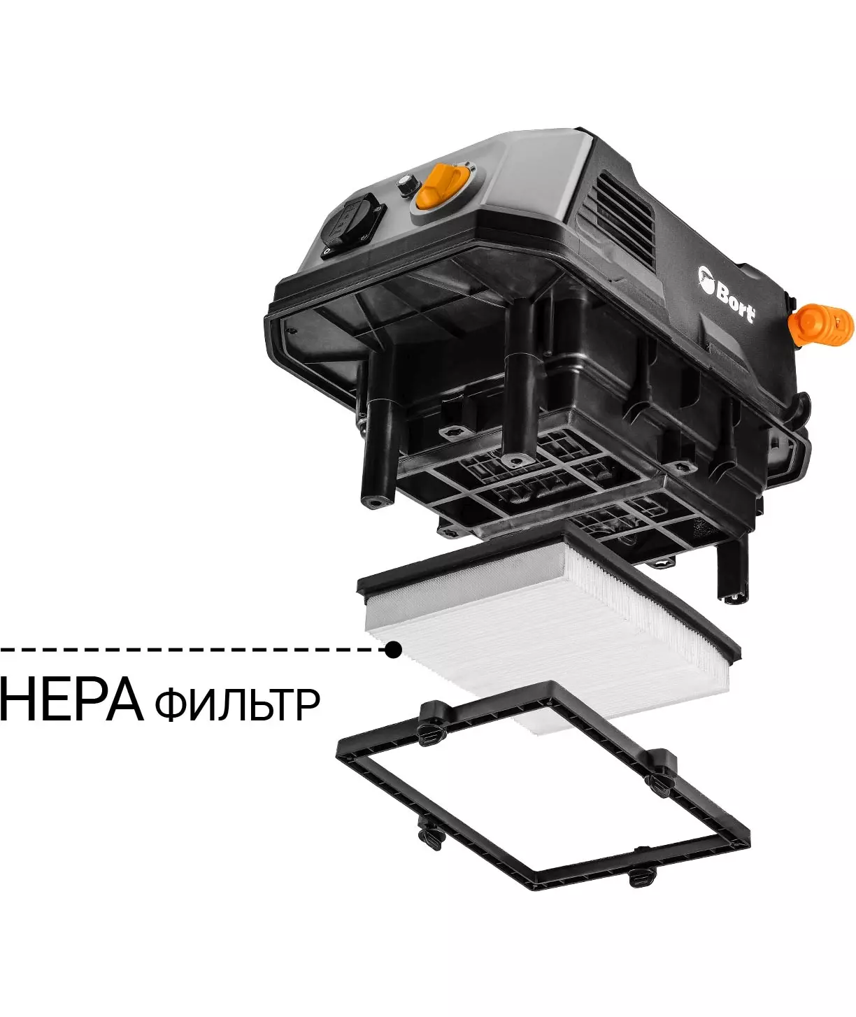 Строительный пылесос Bort BAX-700 1600Вт (уборка: сухая/влажная) серый [93418118]