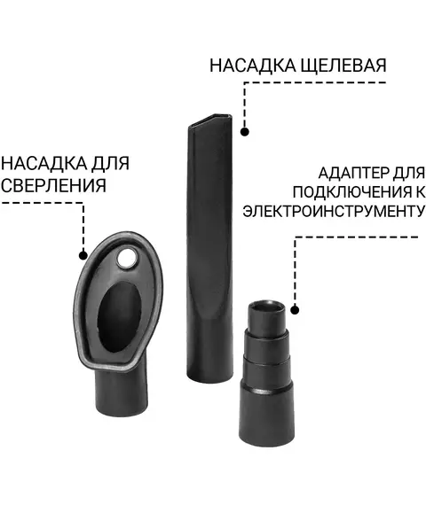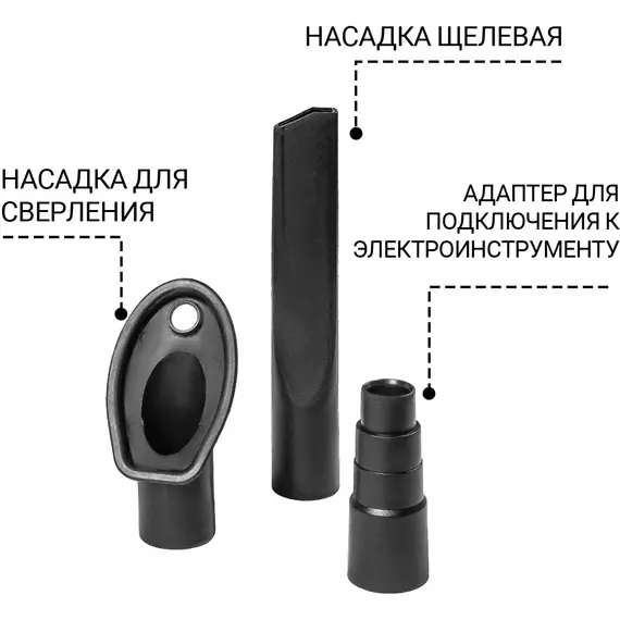 | Насадки | Насадка щелевая: 1Щетка для полов: 1Адаптер для подключения к пылесосу: 1Насадка для сверления: 1 |