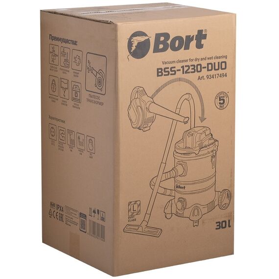 Строительный пылесос Bort BSS-1230-Duo 1200Вт (уборка: сухая/влажная) синий [93417494]