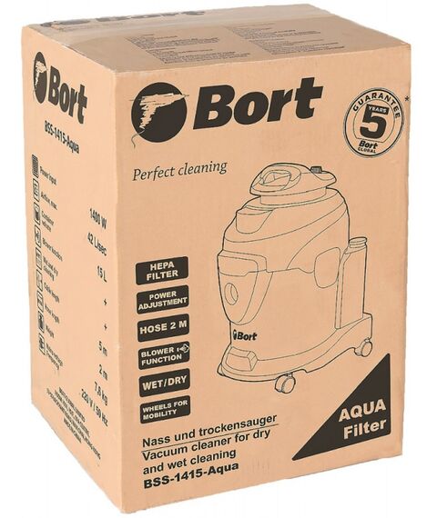 Строительный пылесос Bort BSS-1415-Aqua 1400Вт (уборка: сухая/влажная) синий [93410174]