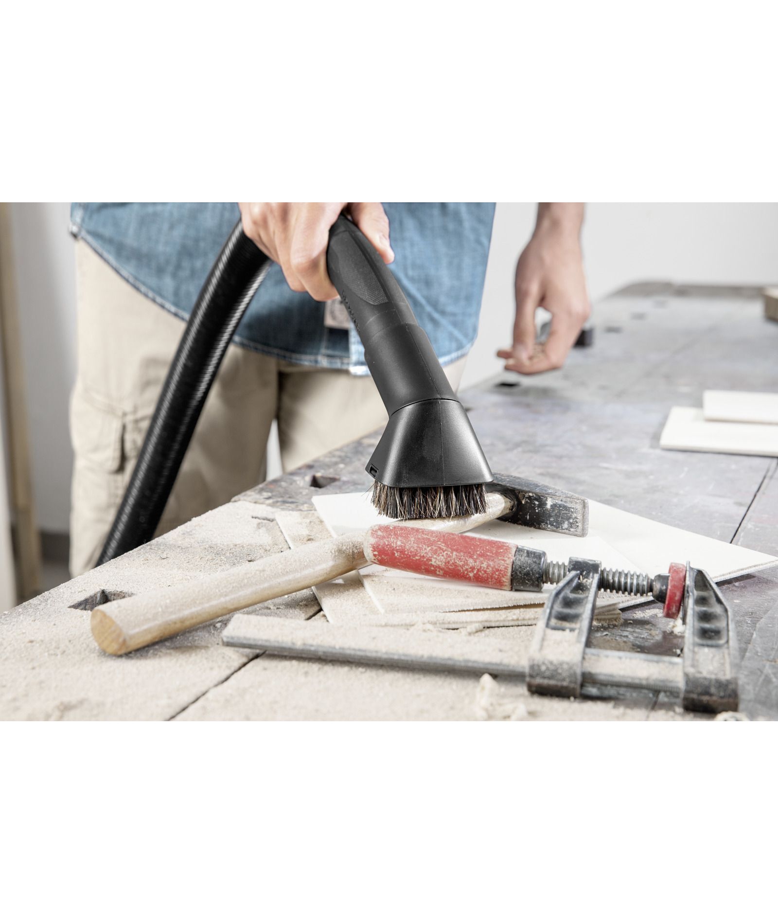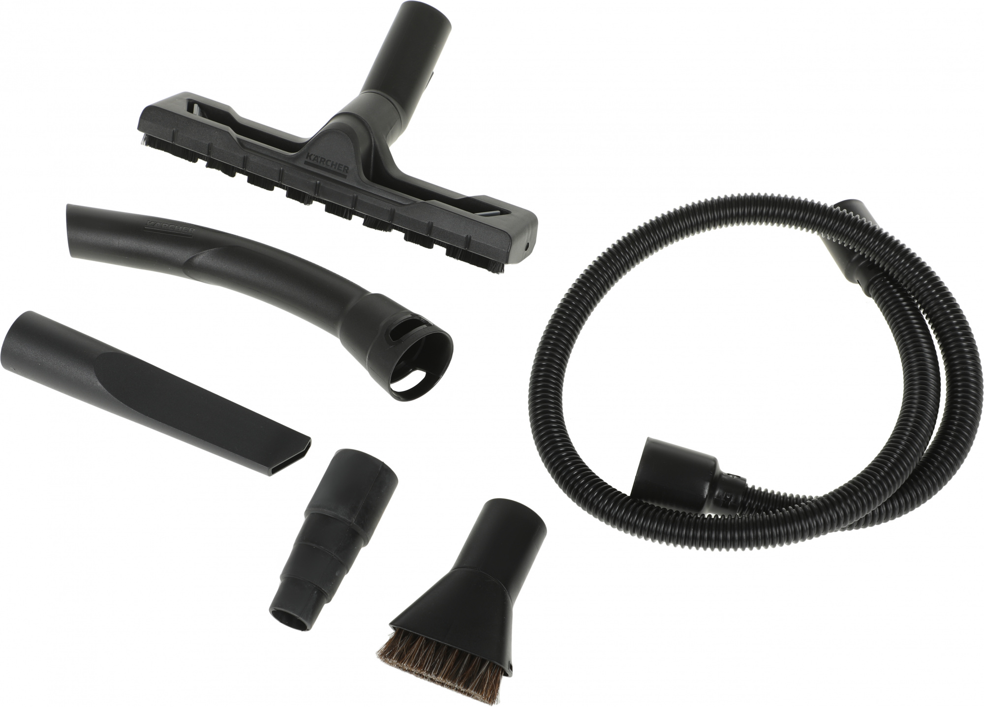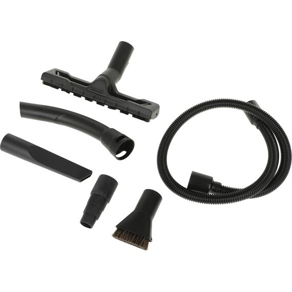 | Насадки | Удлинительные трубки, 2 шт., 0.5 м, 35 мм, пластмасса. Насадка для влажной и сухой уборки, со вставками. Щелевая насадка. Гибкий всасывающий шланг, 2 м, 35 мм. Адаптер для соединения с электроинструментами. Насадка-кисть с мягкой щетиной |