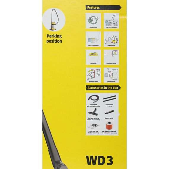 Строительный пылесос Karcher WD 3 S V-17/4/20 1000Вт (уборка: сухая/сбор воды) желтый [1.628-135.0]