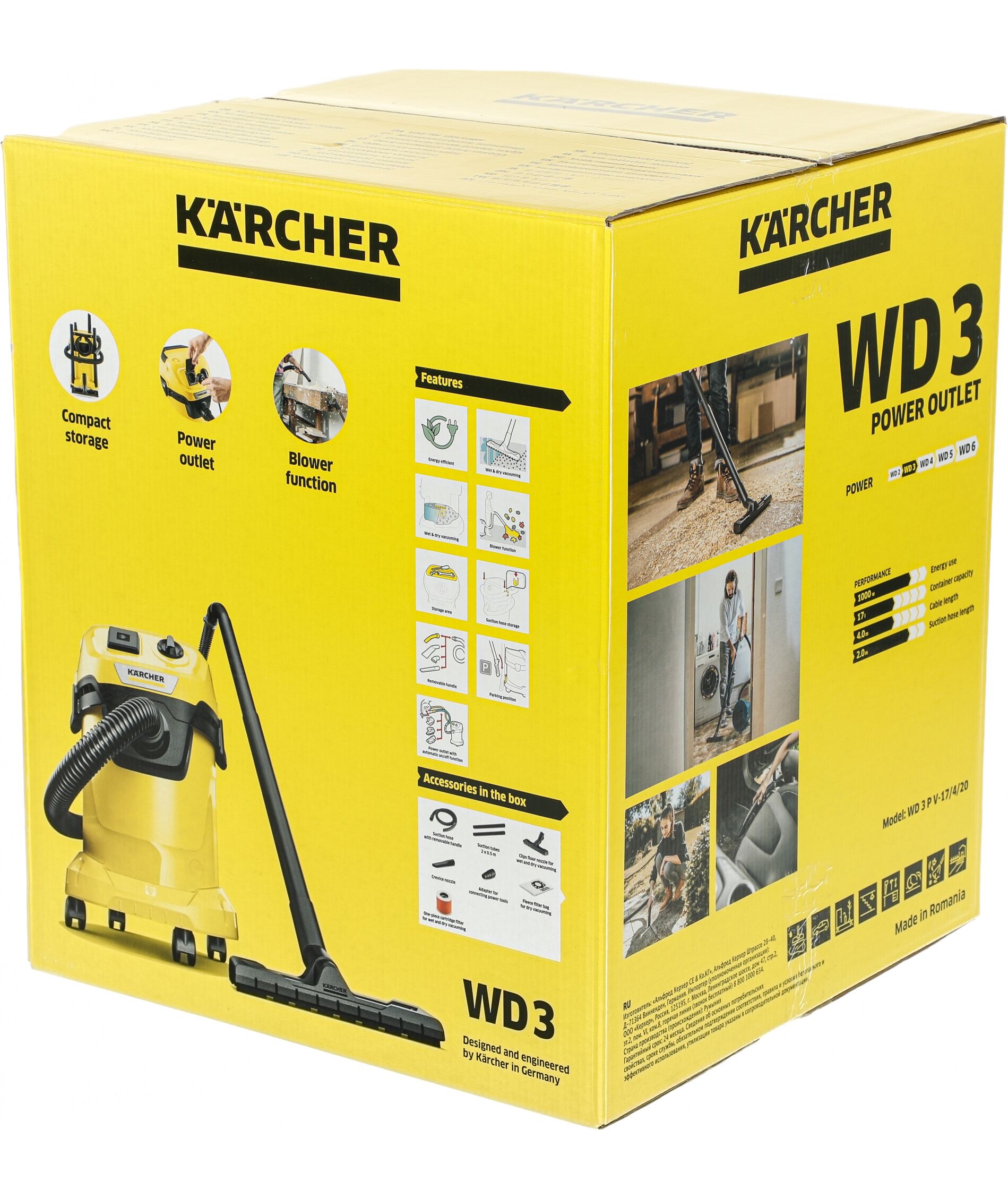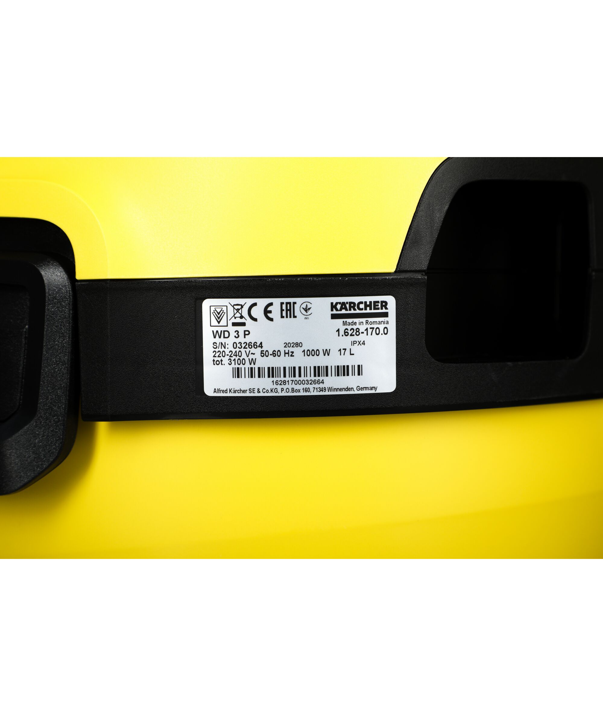 Строительный пылесос Karcher WD3 P V-17/4/20 1000Вт, сухая уборка, сбор воды, желтый [1.628-170.0]
