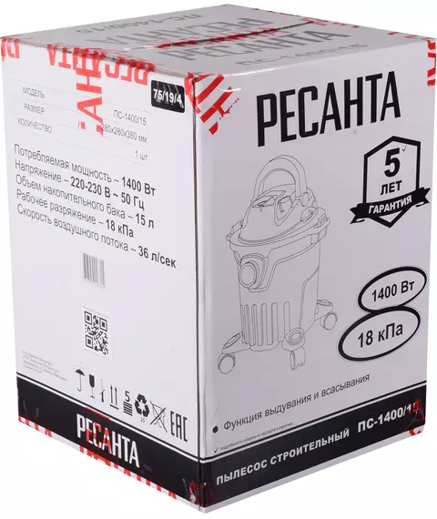 Пылесос строительный РЕСАНТА ПС-1400-15
