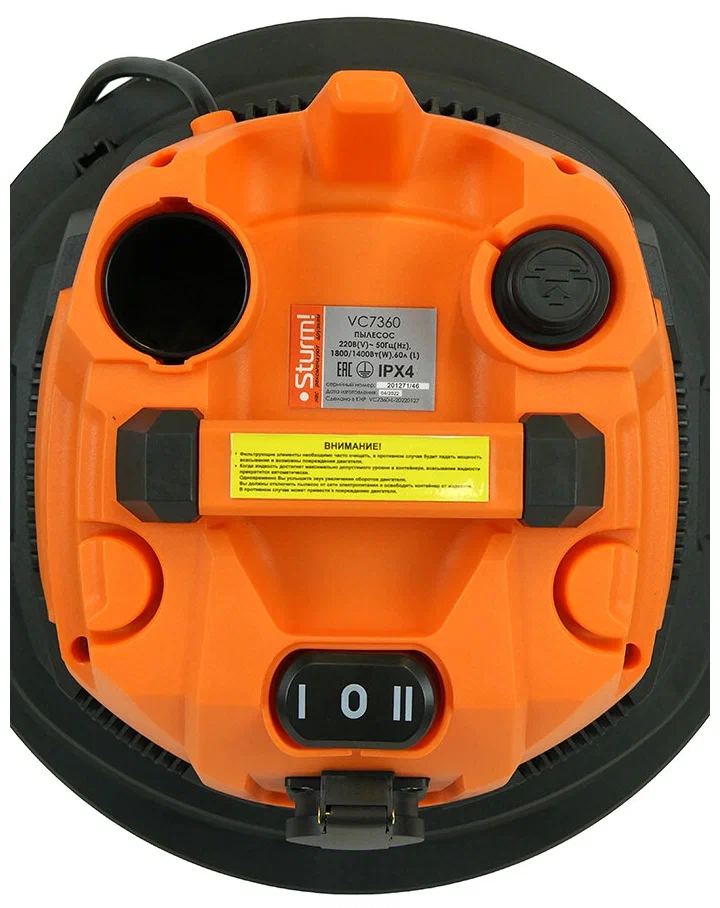 Строительный пылесос Sturm! VC7360 1800Вт (уборка: сухая/сбор воды/выдув) оранжевый