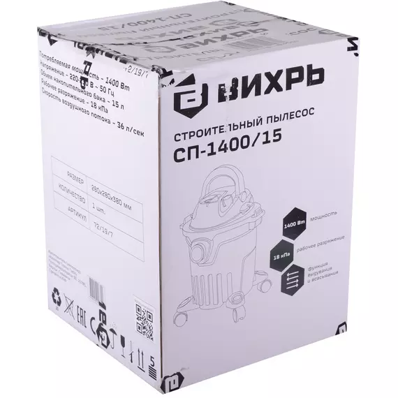 Строительный пылесос Вихрь СП-1400/15