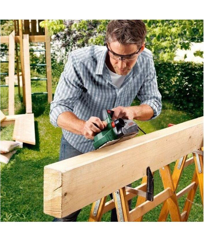 - Электрорубанок обеспечит высокое качество обработки поверхности и равномерный съем стружки — даже при выполнении сложных строгальных работ