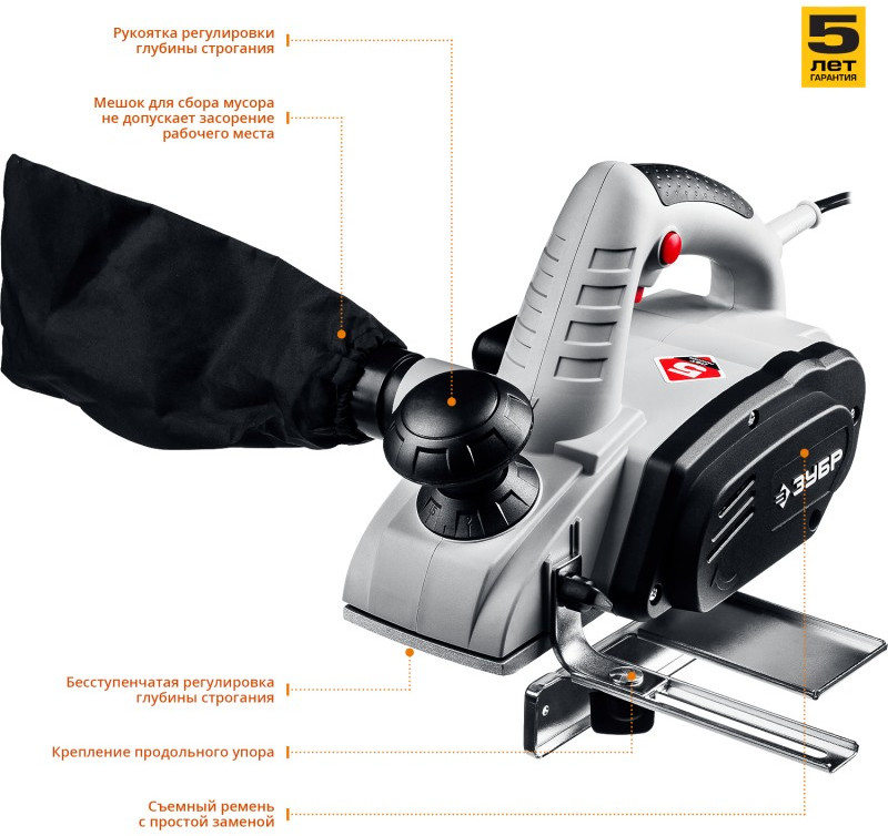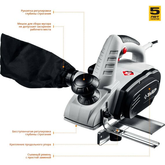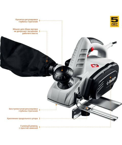 Рубанок электрический Зубр Мастер ЗР-750-82 глубина 2.0 мм, 82 мм, 16 000 об/мин, 750 Вт