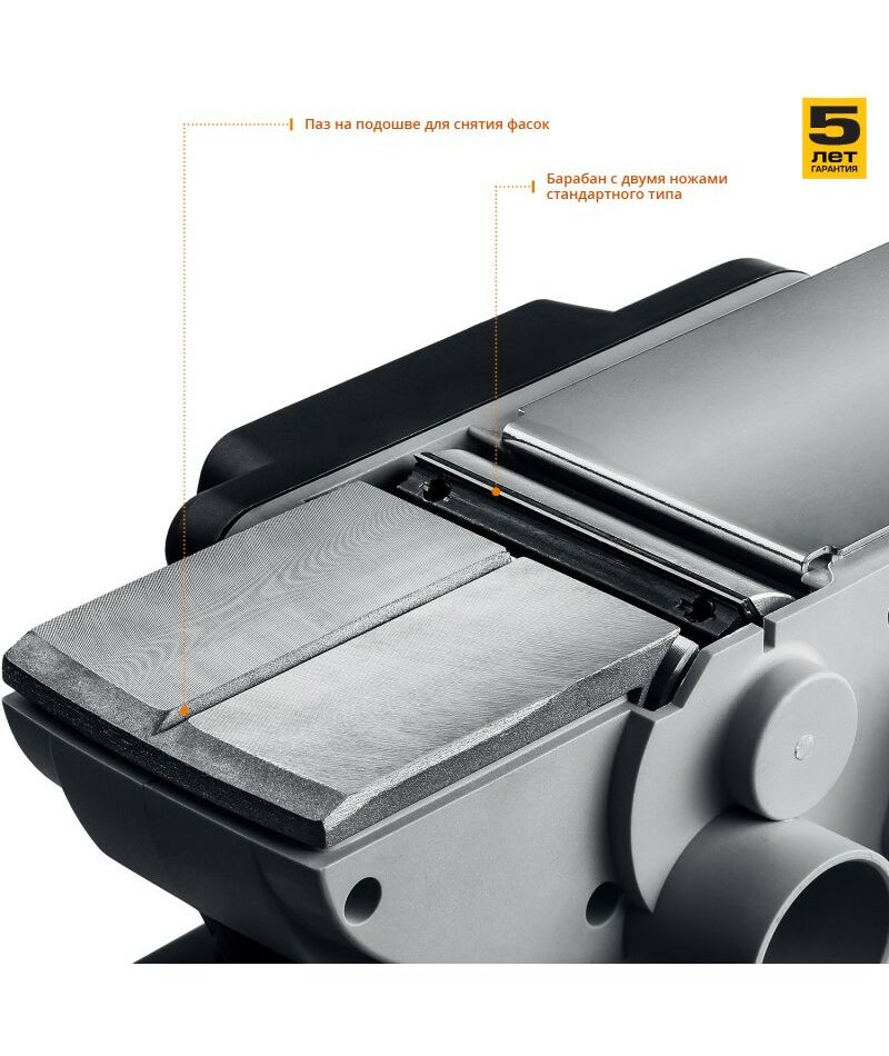 - Плавная регулировка глубины строгания с точностью 0.1 мм