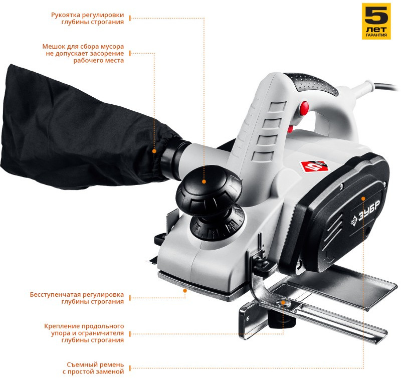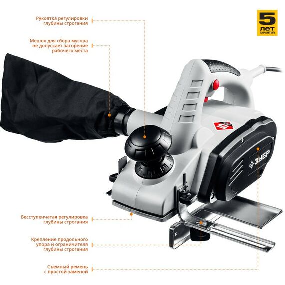 Рубанок электрический Зубр Мастер ЗР-950-82 глубина 3.0 мм, 15000 об/мин, 82 мм, 950 Вт