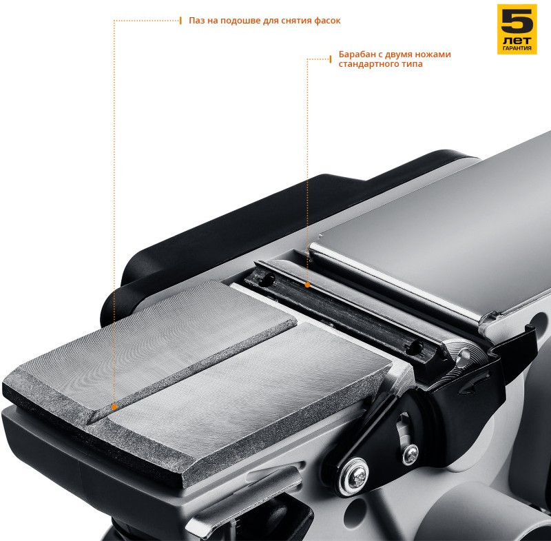 - Литые подошвы гарантируют точность геометрии весь срок службы, а благодаря фрезеровке рубанок легко скользит по заготовке