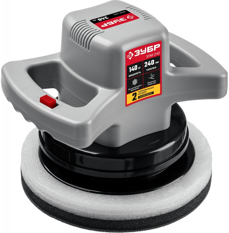 Полировальная машина Зубр ЗПМ-240 2 полировальные насадки, 3200 об/мин, 240 мм, 140 Вт