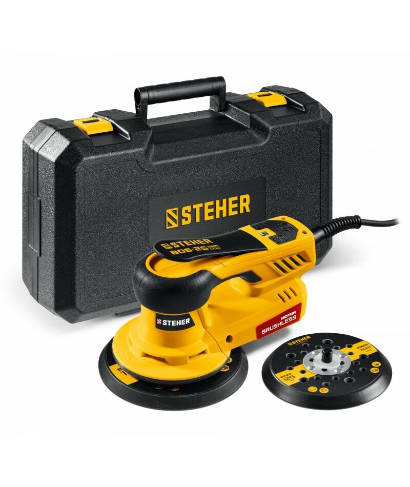 Орбитально-шлифовальная машина STEHER BOS-25 Duo d125 / d150 мм, 2.5 мм, 350 Вт, бесщеточная, кейс [BOS-25]