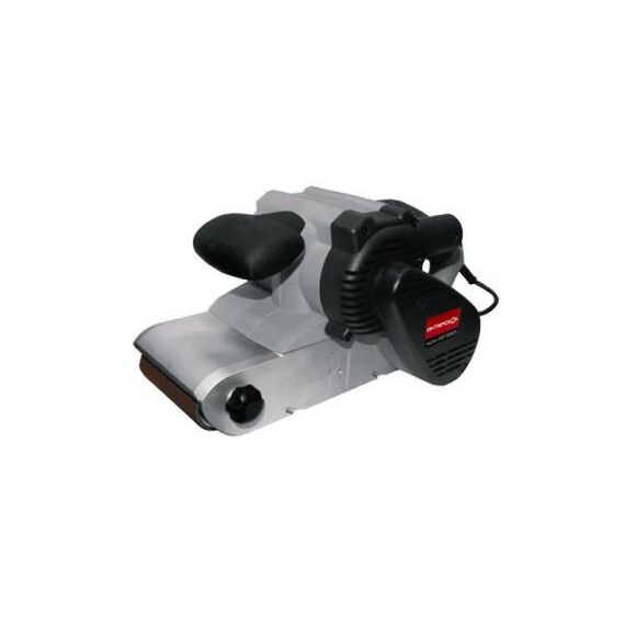 ЛШМ-100/1200 - максимально быстрая и эффективная шлифовка поверхности любого материала. Лентошлифовальная машина позволяет зачищать металлические изделия, выравнивать и обрабатывать (например, скруглять форму, циклевать паркет) деревянные изделия, снимать краску со стен, выравнивать стыки, а также затачивать инструмент. Прилагаемые струбцины для стационарной установки позволяют закрепить машину в перевернутом виде и выполнять работы со значительно большим удобством – например, заточку садового инвентарязначительно удобнее осуществлять на перевернутой и зафиксированной машине. Образующаяся пыль удаляется встроенной системой пылеудаления в мешок. Правда, при работе с металлом мешок нужно снимать - раскаленные искры способны его прожечь. Предельное число оборотов приводного барабана и максимальная скорость шлифовальной ленты устанавливается электронным регулятором, что позволяет шлифовать даже относительно легкоплавкие материалы (пластмассы). Простая система замены ленты не требует вспомогательного инструмента или каких-либо навыков. Рычагом ослабляют натяг ленты, при этом она легко снимается, меняют «расходку» (важно учесть направление движения; поставить ленту нужной стороной помогут стрелки на обратной стороне «шкурки»), возвращают рычаг в исходное положение и, включив машину, центруют абразив, чтобы он не съезжал с роликов. За центровку отвечает рукоятка, вращением которой меняют угол наклона переднего ролика в горизонтальной плоскости.