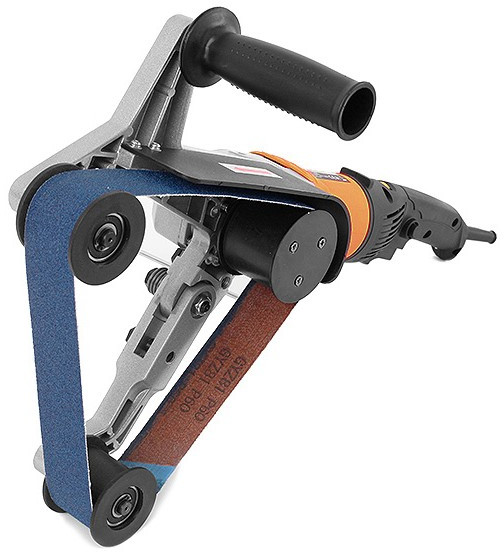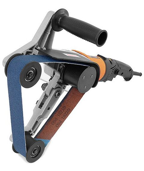 - Плавный пуск позволяет избежать ненужных рывков при включении. Установка и замена шлифленты не требует дополнительных инструментов