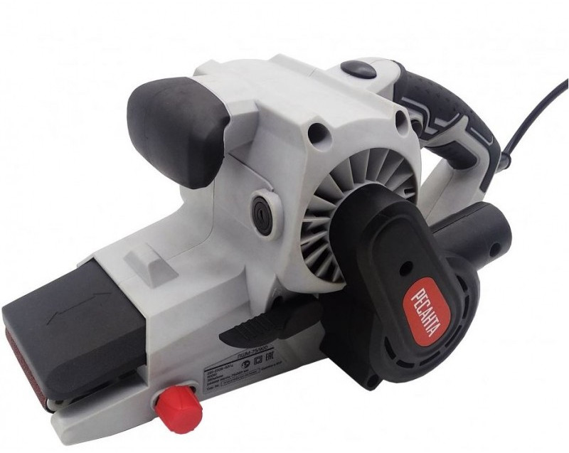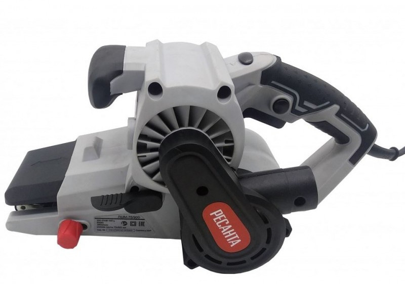 - Ленточная шлифмашина ЛШМ-75/900 Ресанта относится к классу инструмента с электрическим двигателем. Она состоит из корпуса, в основании которого находятся два ролика. На них надевается замкнутая лента с абразивной поверхностью. Один из роликов ведущий, второй служит для регулировки поперечного положения ленты. За счёт вращения ленты на большой скорости и движения инструмента по заготовке происходит снятие верхнего слоя материала