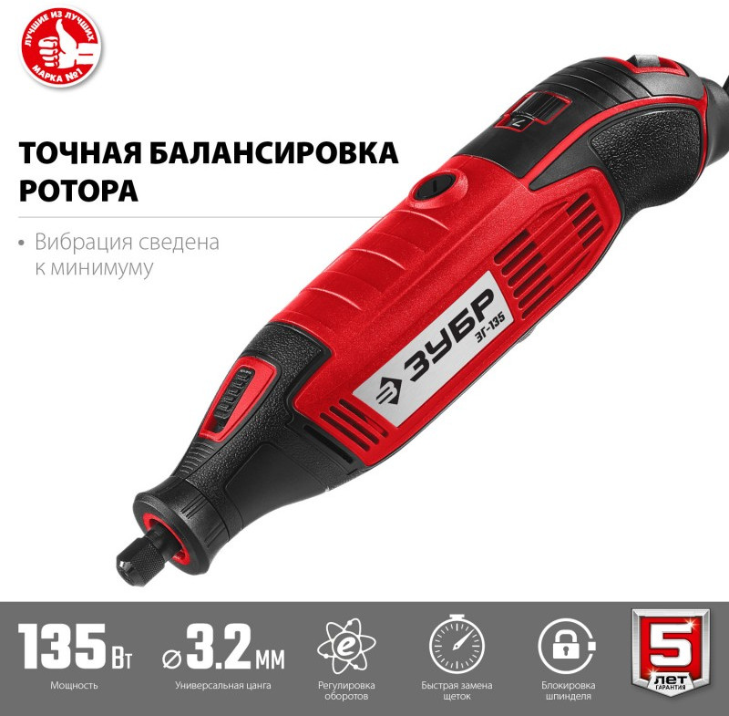 Гравер электрический Зубр ЗГ-135 220В, 135 Вт, 3.2 мм, 15000-35000 об/мин, базовая модель, в коробке
