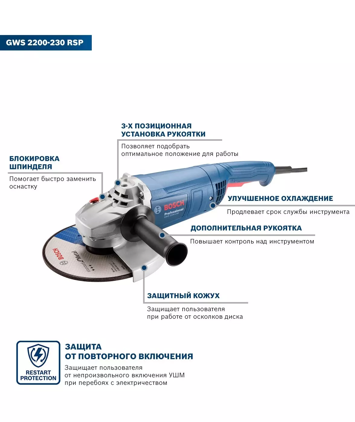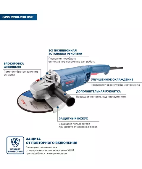 Описание BOSCH GWS 2200-230 RSP [06018C1320]