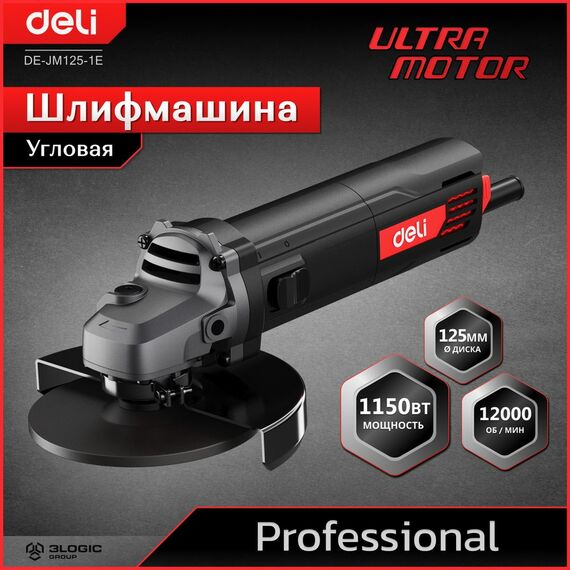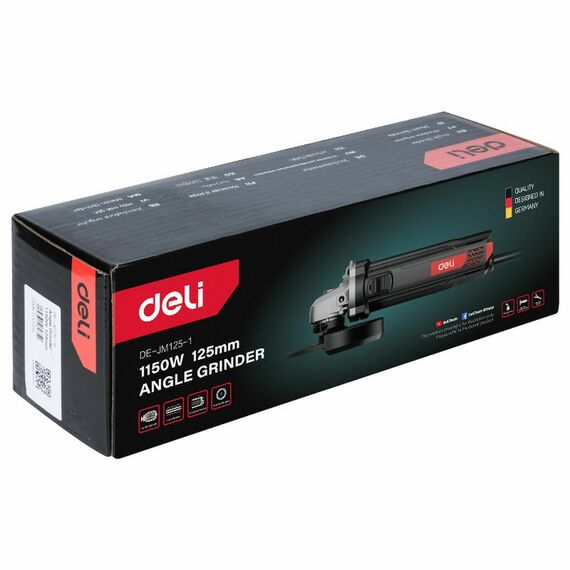 Угловая шлифмашина сетевая Deli DE-JM125-1E 1150Вт, 125мм, 12000об/мин, картон