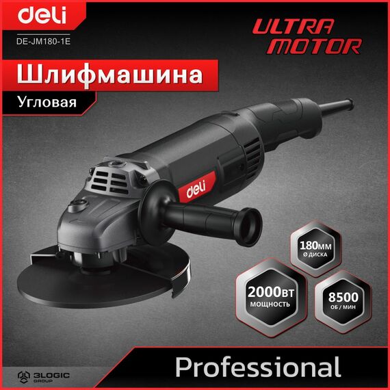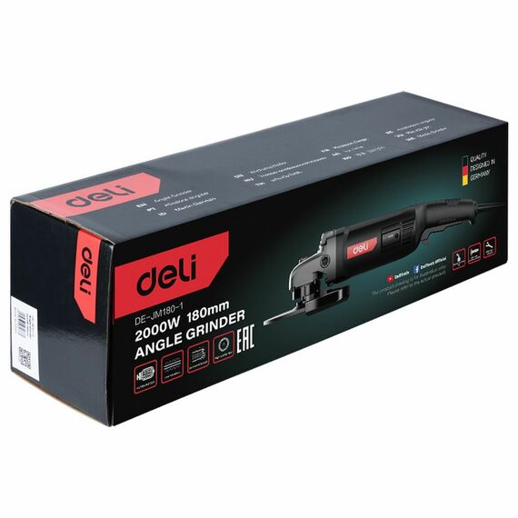 Угловая шлифмашина сетевая Deli DE-JM180-1E 2000Вт, 180мм, 8500об/мин, картон