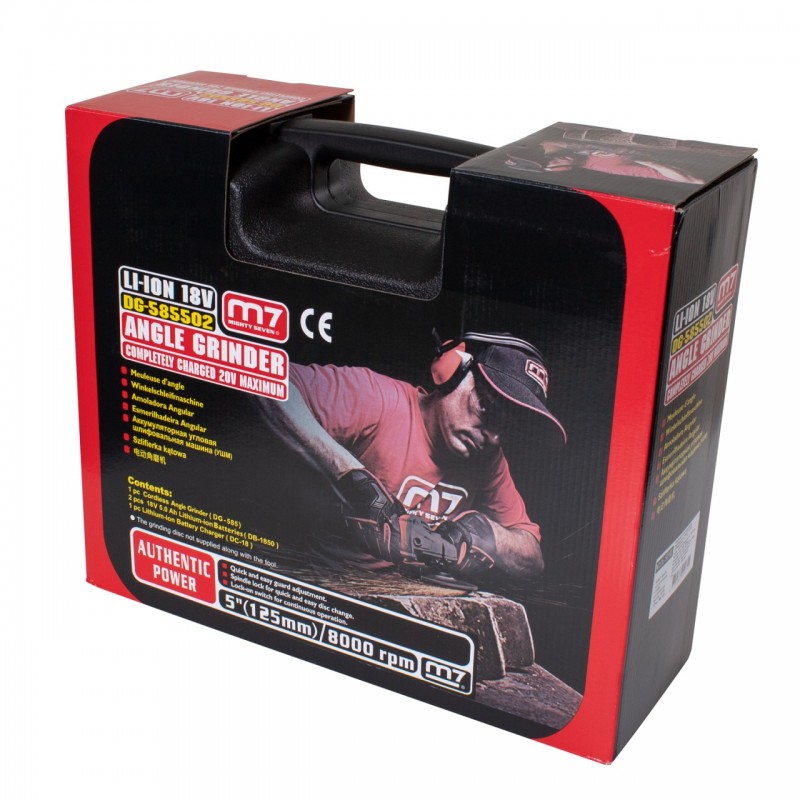 Шлифмашина угловая (УШМ) MIGHTY SEVEN DG-585502 125 мм, 18 В, аккумуляторная, кейс