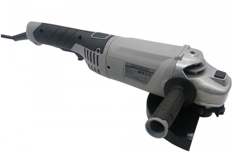 - Углошлифовальная машина (болгарка) УШМ-230/2300 оснащена двигателем мощностью 2300 Вт. Блокировка шпинделя позволяет безопасно сменить диск. Благодаря легкому доступу к щеткам можно обслуживать инструмент в домашних условиях. Модель работает с дисками диаметром 230 мм. Для удобства работы рукоятка может быть установлена в трех различных положениях с шагом 90°