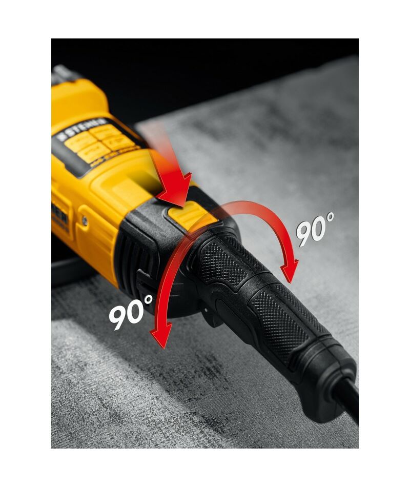 - Фирменная дополнительная рукоятка, устанавливаемая в трех положениях, обеспечивает максимальный комфорт в работе.