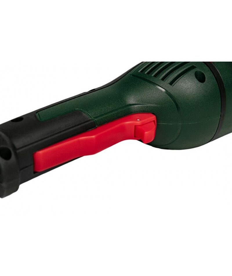 - УШМ удобна в использовании. Блокировка шпинделя обеспечивает легкую замену оснастки. Прорезиненная дополнительная рукоять упрощает управление инструментом и снижаем вибрацию. Неоспоримое преимущество - наличие кнопки фиксации пуска