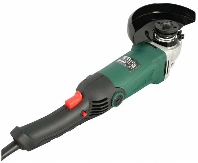 - Отлично проявляет себя при шлифовке. «Болгарка» удобна в управлении за счет удлиненной и обрезиненной основной рукоятки, совмещенной с выключателем, что позволяет комфортно выполнять работы