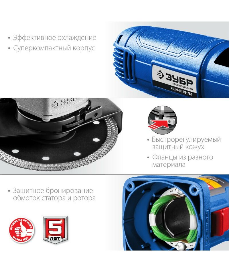 УШМ Зубр Профессионал УШМ-П125-750 125 мм, 750 Вт