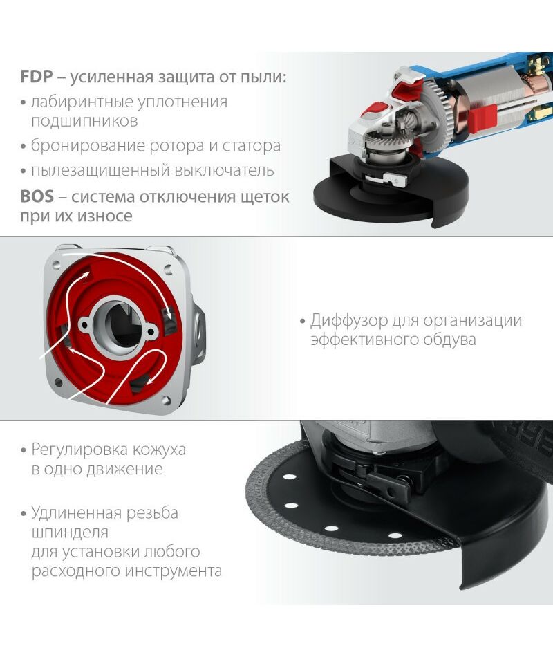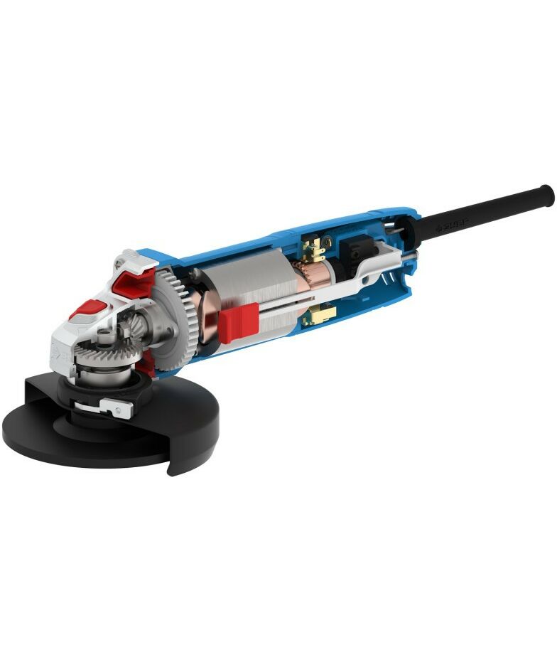 УШМ увеличенной мощности при сохранении компактных размеров. Сочетание диска 125 мм и мощности двигателя отлично подходит для всех видов работ - резки металла, кирпича, керамики, зачистки и шлифовки. Простота конструкции и усиленная пылезащита всех узлов гарантирует долгий срок службы даже при самых суровых условиях эксплуатации