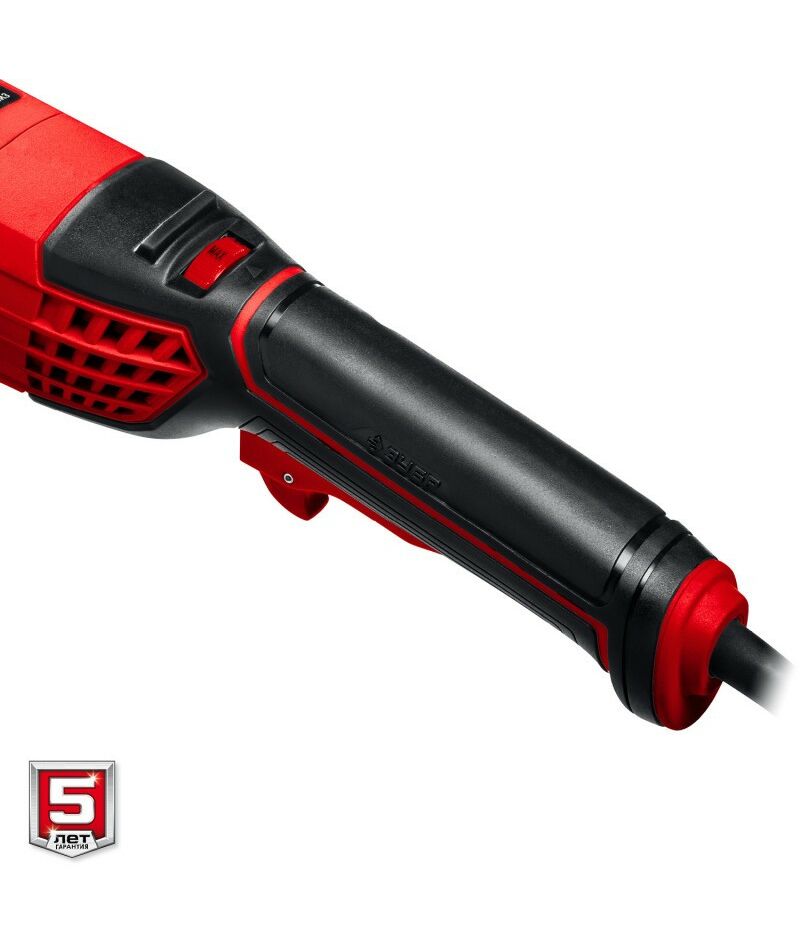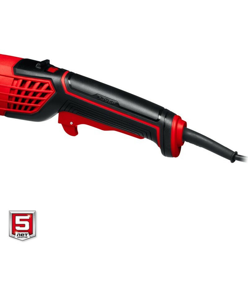 - Широкий эргономичный выключатель с пылезащитой, блокировкой непреднамеренного включения, а также фиксацией во включенном положении