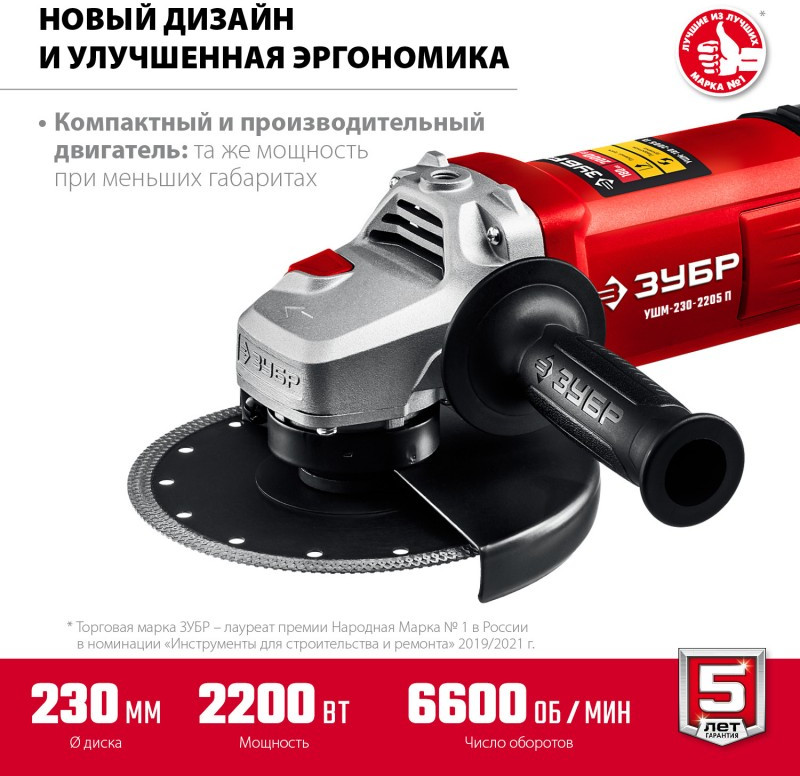 УШМ Зубр УШМ-230-2205 П 230 мм, 2200 Вт, компакт