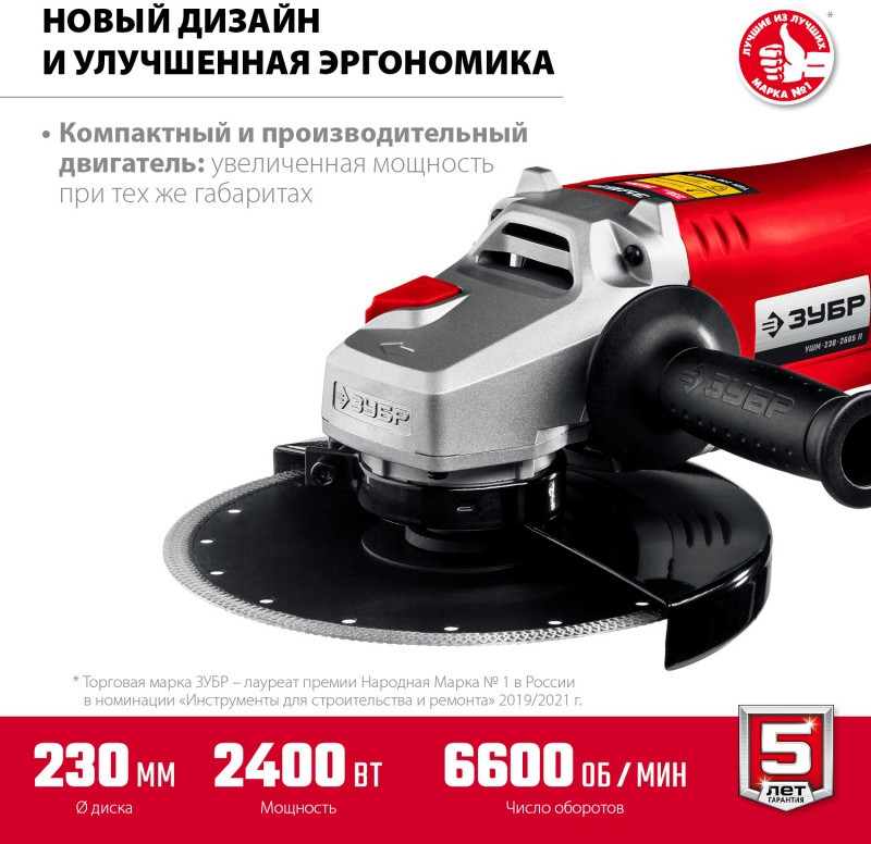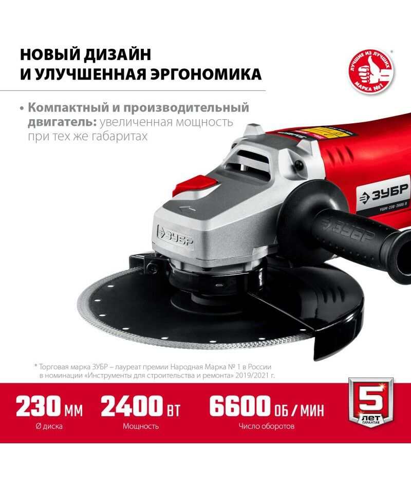 УШМ (болгарка) Зубр УШМ-230-2405 П 230 мм, 2400 Вт, компакт